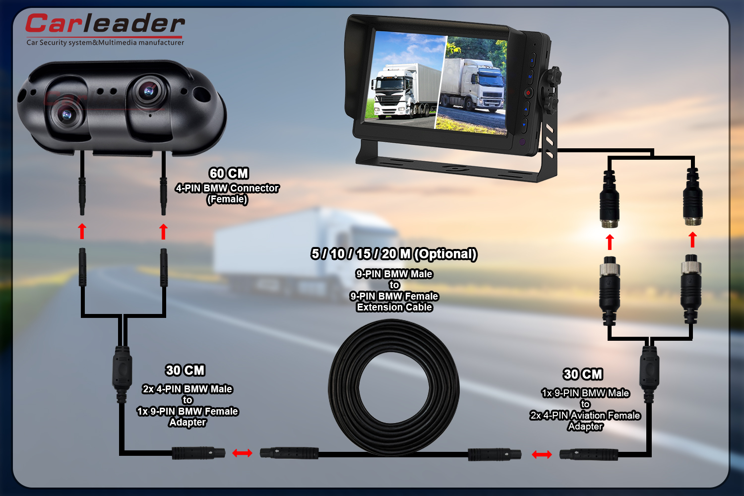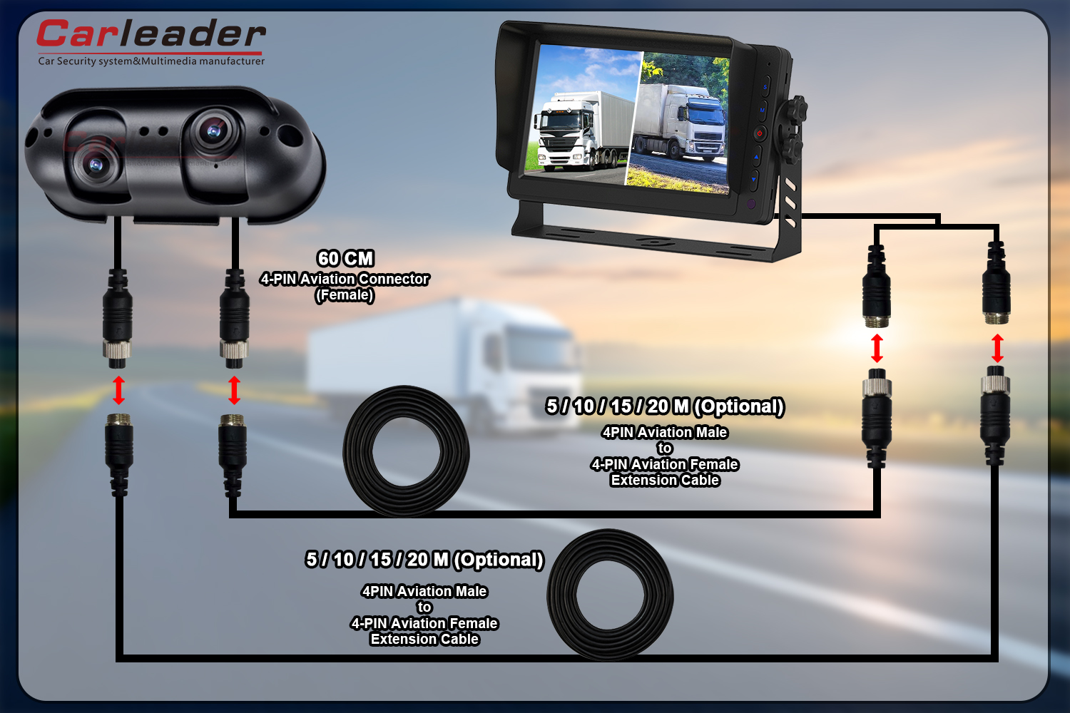 Carleader will offers two different wiring solution for Starlight AHD Dual Lens Heavy Duty Reversing Camera, to fit different wiring need: