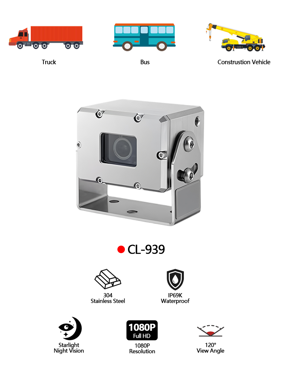 Carleader 304 Stainless Steel Starlight Heavy Duty Camera ideal for heavy duty vehicle, commercial truck, marine environments, chemical vehicle, and any vehicle application requiring a rugged, weatherproof surveillance solution.