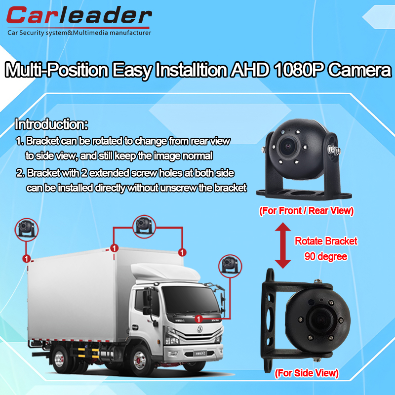 Carleader AHD Heavy Duty Vehicle Front / Side / Rear View Camera with bracket install hole at the up, down, right, left, which allow camera to adjust the camera bracket to fit different camera position, such as front, side and rear view, make this camera more compatible for vehicle safety surveillance system.